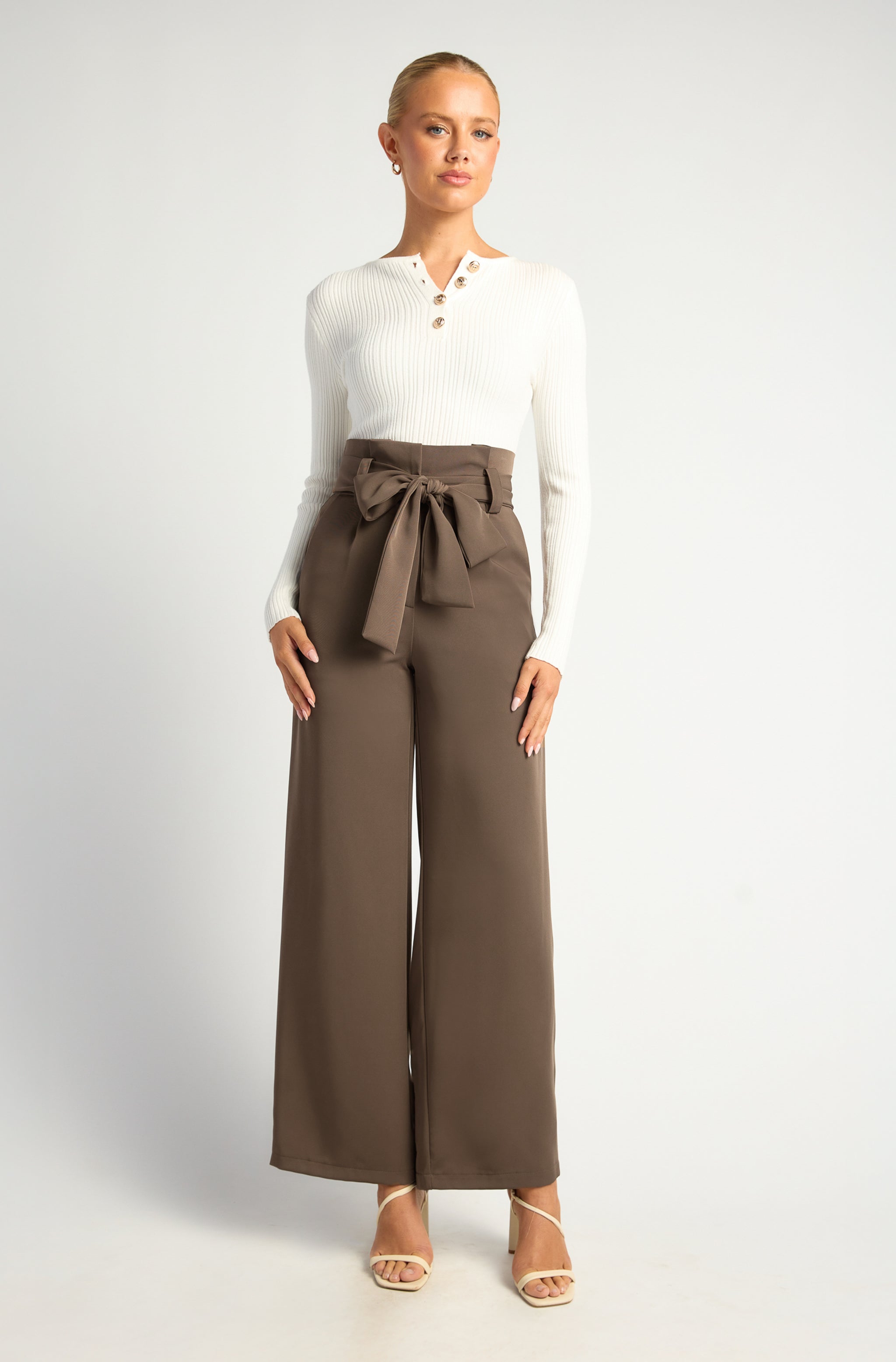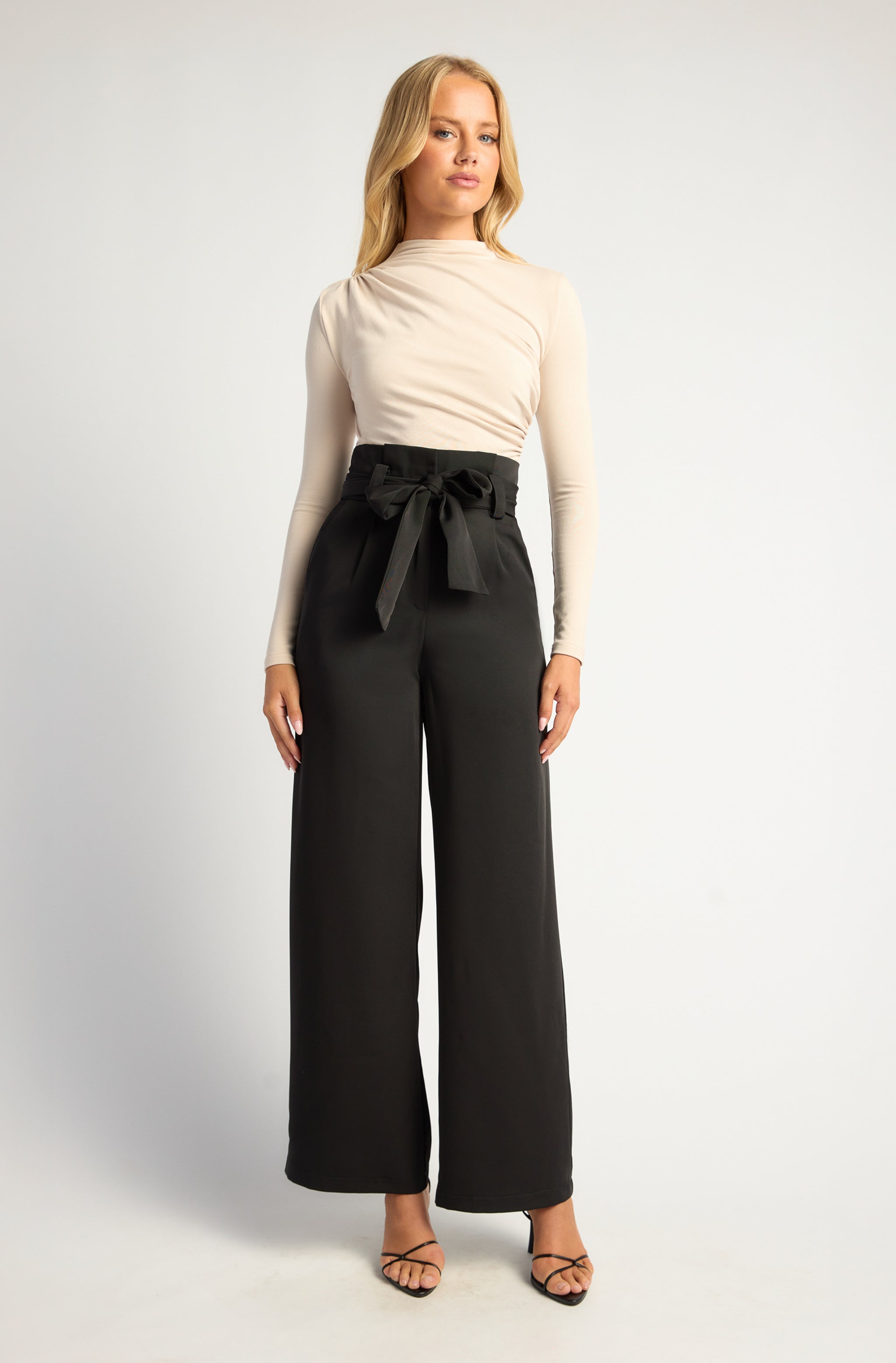Paper bag wide leg pants